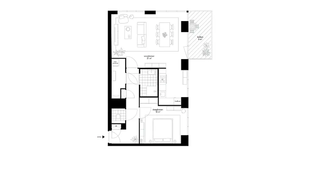 Dit 2-kamerappartement van ongeveer 63 m2 ligt op de 9e, 13e en 17e verdieping en heeft een balkon op het noordoosten. Vanwege de hoekligging heeft dit appartement extra ramen wat zorgt voor een mooie lichtinval. Het appartement is ingedeeld met een royale living met halfopen hoekkeuken, ruime slaapkamer, apart toilet en badkamer met wastafel en inloopdouche. In de berging kun je de wasmachine en wasdroger plaatsen en staan de technische apparaten.