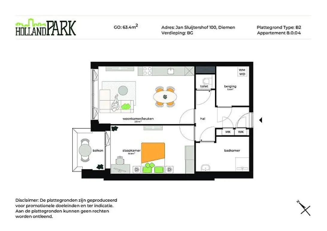 Dit comfortabele 2-kamer appartement biedt een ideale leefomgeving voor een single of een stel. De ruime woonkamer met open keuken vormt het hart van het appartement, perfect voor ontspanning en het ontvangen van gasten. De slaapkamer biedt voldoende ruimte voor een tweepersoonsbed en kastruimte. Een moderne badkamer, apart toilet en een handige berging maken dit appartement compleet. In sommige gevallen is er een extra onbenoemde ruimte aanwezig, flexibel te gebruiken als werk- of hobbyruimte. Voor een gedetailleerd overzicht van de indeling en afmetingen van de verschillende ruimtes, zie de plattegrond.
