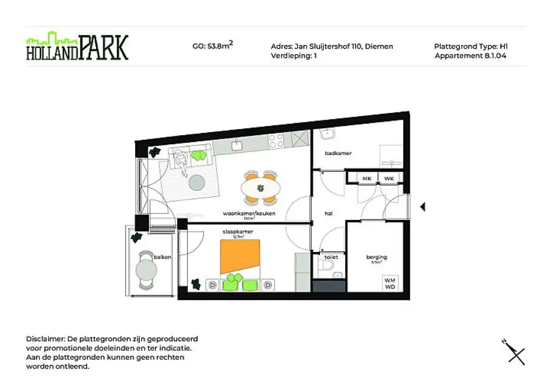 Dit comfortabele 2-kamer appartement biedt een ideale leefomgeving voor een single of een stel. De ruime woonkamer met open keuken vormt het hart van het appartement, perfect voor ontspanning en het ontvangen van gasten. De slaapkamer biedt voldoende ruimte voor een tweepersoonsbed en kastruimte. Een moderne badkamer, apart toilet en een handige berging maken dit appartement compleet. In sommige gevallen is er een extra onbenoemde ruimte aanwezig, flexibel te gebruiken als werk- of hobbyruimte. Voor een gedetailleerd overzicht van de indeling en afmetingen van de verschillende ruimtes, zie de plattegrond.