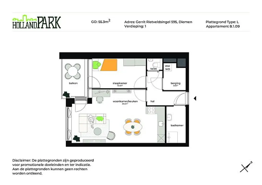 Dit comfortabele 2-kamer appartement biedt een ideale leefomgeving voor een single of een stel. De ruime woonkamer met open keuken vormt het hart van het appartement, perfect voor ontspanning en het ontvangen van gasten. De slaapkamer biedt voldoende ruimte voor een tweepersoonsbed en kastruimte. Een moderne badkamer, apart toilet en een handige berging maken dit appartement compleet. In sommige gevallen is er een extra onbenoemde ruimte aanwezig, flexibel te gebruiken als werk- of hobbyruimte. Voor een gedetailleerd overzicht van de indeling en afmetingen van de verschillende ruimtes, zie de plattegrond.