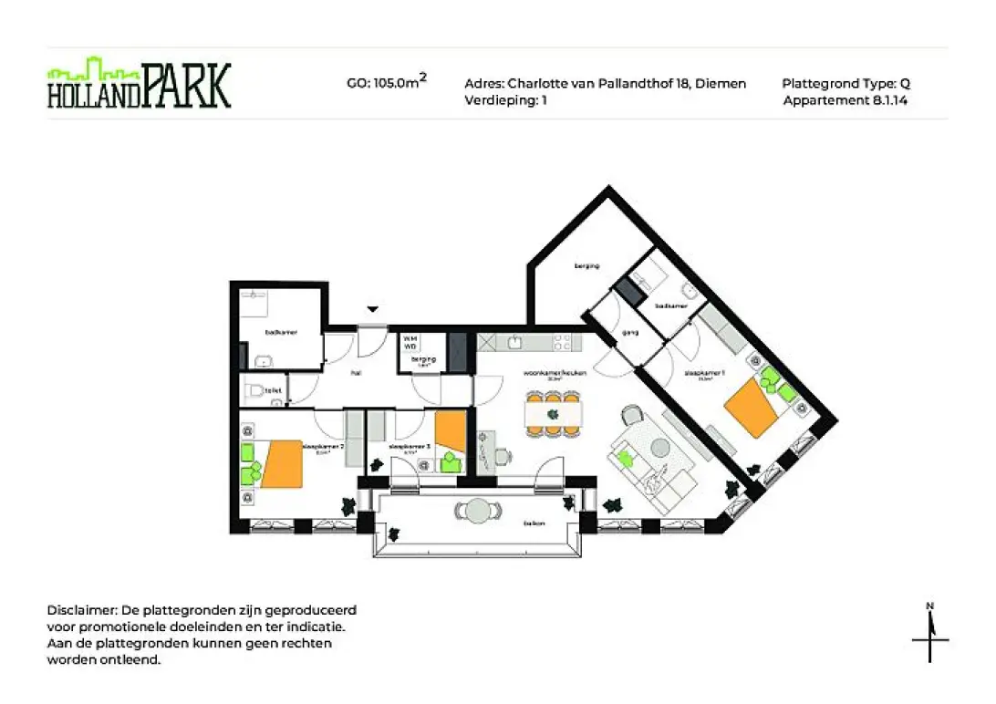 Dit royale 4-kamer appartement biedt een ideale leefomgeving voor gezinnen of diegenen die extra ruimte nodig hebben. De grote woonkamer met open keuken vormt een centrale plek voor familieactiviteiten. Drie ruime slaapkamers bieden voldoende privacy en flexibiliteit voor het hele gezin. Een moderne badkamer, apart toilet en berging(en) zorgen voor optimaal comfort en opslagmogelijkheden. Veel van deze appartementen hebben ook een balkon of terras, perfect voor het buitenleven. Raadpleeg de plattegrond voor een gedetailleerde indeling en afmetingen van de ruimtes.
