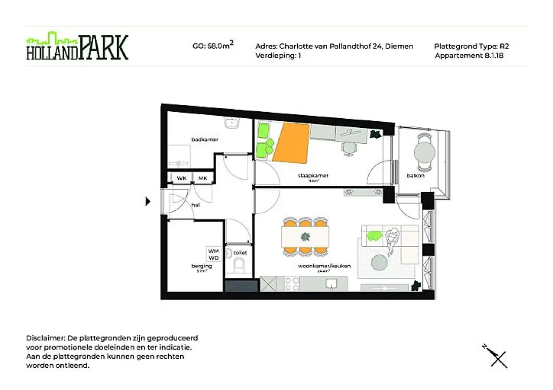 Dit comfortabele 2-kamer appartement biedt een ideale leefomgeving voor een single of een stel. De ruime woonkamer met open keuken vormt het hart van het appartement, perfect voor ontspanning en het ontvangen van gasten. De slaapkamer biedt voldoende ruimte voor een tweepersoonsbed en kastruimte. Een moderne badkamer, apart toilet en een handige berging maken dit appartement compleet. In sommige gevallen is er een extra onbenoemde ruimte aanwezig, flexibel te gebruiken als werk- of hobbyruimte. Voor een gedetailleerd overzicht van de indeling en afmetingen van de verschillende ruimtes, zie de plattegrond.