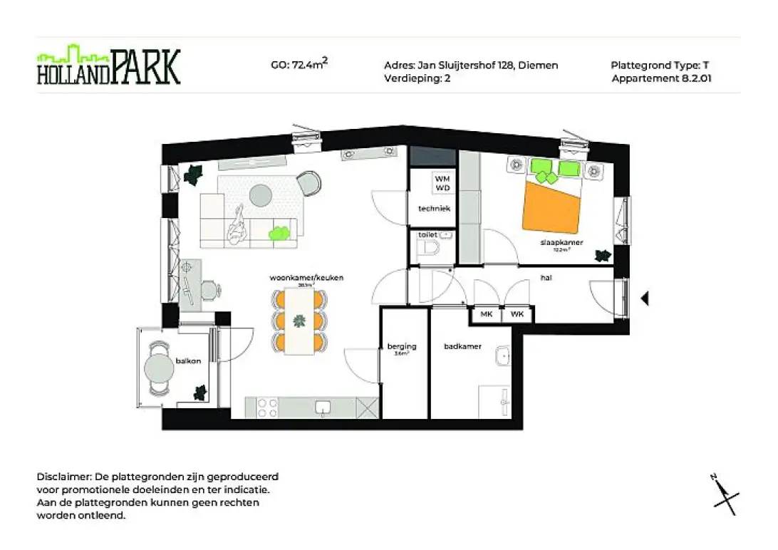 Dit comfortabele 2-kamer appartement biedt een ideale leefomgeving voor een single of een stel. De ruime woonkamer met open keuken vormt het hart van het appartement, perfect voor ontspanning en het ontvangen van gasten. De slaapkamer biedt voldoende ruimte voor een tweepersoonsbed en kastruimte. Een moderne badkamer, apart toilet en een handige berging maken dit appartement compleet. In sommige gevallen is er een extra onbenoemde ruimte aanwezig, flexibel te gebruiken als werk- of hobbyruimte. Voor een gedetailleerd overzicht van de indeling en afmetingen van de verschillende ruimtes, zie de plattegrond.