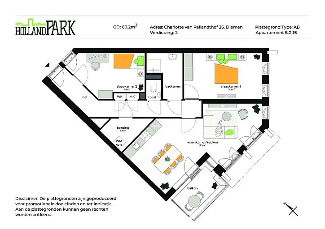Een 3-kamer appartement is perfect voor kleine gezinnen of stellen die extra ruimte wensen. De royale woonkamer met open keuken biedt een uitnodigende ruimte voor zowel wonen als dineren. Twee ruime slaapkamers zorgen voor voldoende comfort. De moderne badkamer is voorzien van alle gemakken en een apart toilet en berging bieden extra functionaliteit. Dit appartement biedt ook vaak een balkon of terras, ideaal voor buiten zitten. Bekijk de plattegrond voor de specifieke indeling en afmetingen van de ruimtes.
