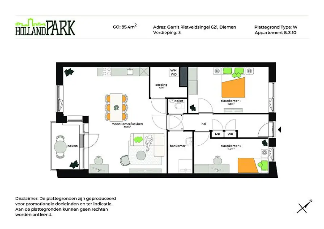 Een 3-kamer appartement is perfect voor kleine gezinnen of stellen die extra ruimte wensen. De royale woonkamer met open keuken biedt een uitnodigende ruimte voor zowel wonen als dineren. Twee ruime slaapkamers zorgen voor voldoende comfort. De moderne badkamer is voorzien van alle gemakken en een apart toilet en berging bieden extra functionaliteit. Dit appartement biedt ook vaak een balkon of terras, ideaal voor buiten zitten. Bekijk de plattegrond voor de specifieke indeling en afmetingen van de ruimtes.
