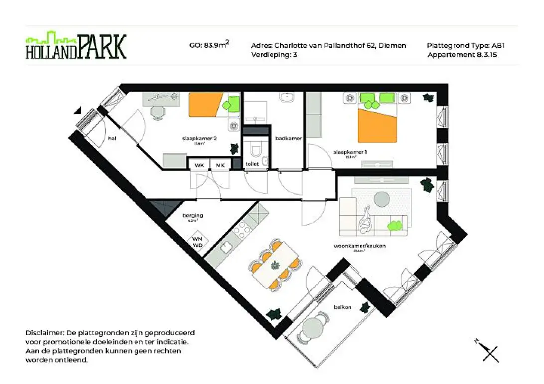 Een 3-kamer appartement is perfect voor kleine gezinnen of stellen die extra ruimte wensen. De royale woonkamer met open keuken biedt een uitnodigende ruimte voor zowel wonen als dineren. Twee ruime slaapkamers zorgen voor voldoende comfort. De moderne badkamer is voorzien van alle gemakken en een apart toilet en berging bieden extra functionaliteit. Dit appartement biedt ook vaak een balkon of terras, ideaal voor buiten zitten. Bekijk de plattegrond voor de specifieke indeling en afmetingen van de ruimtes.