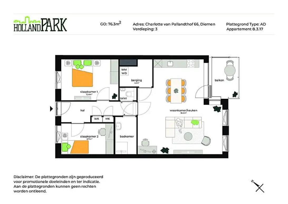 Een 3-kamer appartement is perfect voor kleine gezinnen of stellen die extra ruimte wensen. De royale woonkamer met open keuken biedt een uitnodigende ruimte voor zowel wonen als dineren. Twee ruime slaapkamers zorgen voor voldoende comfort. De moderne badkamer is voorzien van alle gemakken en een apart toilet en berging bieden extra functionaliteit. Dit appartement biedt ook vaak een balkon of terras, ideaal voor buiten zitten. Bekijk de plattegrond voor de specifieke indeling en afmetingen van de ruimtes.