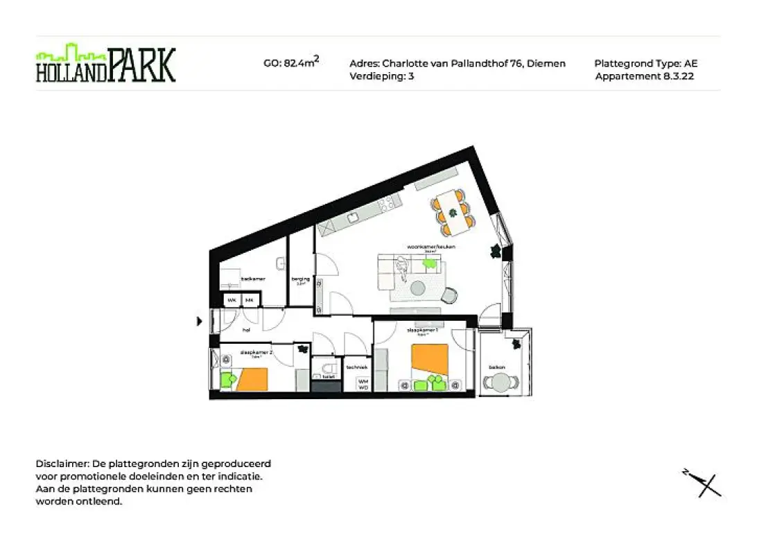 Een 3-kamer appartement is perfect voor kleine gezinnen of stellen die extra ruimte wensen. De royale woonkamer met open keuken biedt een uitnodigende ruimte voor zowel wonen als dineren. Twee ruime slaapkamers zorgen voor voldoende comfort. De moderne badkamer is voorzien van alle gemakken en een apart toilet en berging bieden extra functionaliteit. Dit appartement biedt ook vaak een balkon of terras, ideaal voor buiten zitten. Bekijk de plattegrond voor de specifieke indeling en afmetingen van de ruimtes.