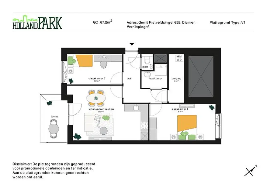 Een 3-kamer appartement is perfect voor kleine gezinnen of stellen die extra ruimte wensen. De royale woonkamer met open keuken biedt een uitnodigende ruimte voor zowel wonen als dineren. Twee ruime slaapkamers zorgen voor voldoende comfort. De moderne badkamer is voorzien van alle gemakken en een apart toilet en berging bieden extra functionaliteit. Dit appartement biedt ook vaak een balkon of terras, ideaal voor buiten zitten. Bekijk de plattegrond voor de specifieke indeling en afmetingen van de ruimtes.