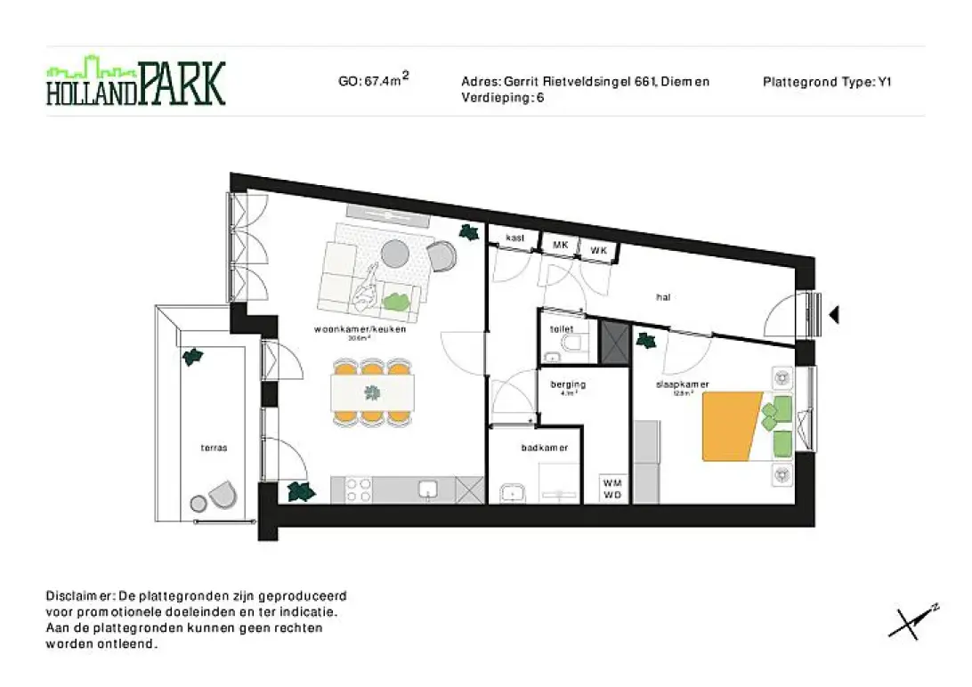 Dit comfortabele 2-kamer appartement biedt een ideale leefomgeving voor een single of een stel. De ruime woonkamer met open keuken vormt het hart van het appartement, perfect voor ontspanning en het ontvangen van gasten. De slaapkamer biedt voldoende ruimte voor een tweepersoonsbed en kastruimte. Een moderne badkamer, apart toilet en een handige berging maken dit appartement compleet. In sommige gevallen is er een extra onbenoemde ruimte aanwezig, flexibel te gebruiken als werk- of hobbyruimte. Voor een gedetailleerd overzicht van de indeling en afmetingen van de verschillende ruimtes, zie de plattegrond.