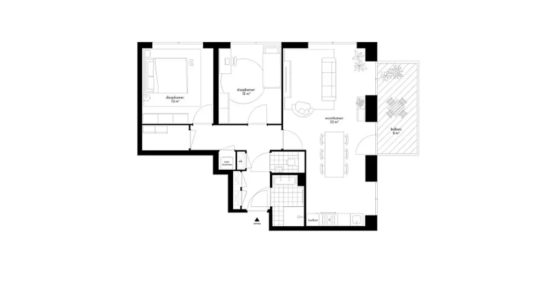 Dit 3-kamerappartement ligt op de 5e tot en met de 14e verdieping. Het appartement heeft een woonoppervlakte van ongeveer 78 m² en is ingedeeld met een ruime, lichte living met open hoekkeuken, twee fraaie slaapkamers, separaat toilet en badkamer met brede wastafel en inloopdouche. Bijzonder prettig is het uitkragend balkon van ruim 8 m². De zonligging is op het noordoosten, dus hier geniet je van de ochtendzon.