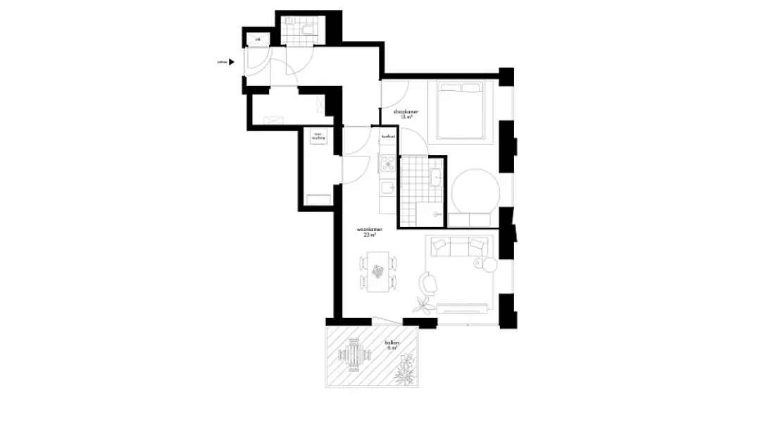 Dit 2-kamerappartement ligt op de 4 t/m 13e verdieping en heeft een woonoppervlakte van ongeveer 60 m². Het appartement is ingedeeld met een living met halfopen keuken, balkon op het zuidoosten en een slaapkamer met ensuite badkamer. De slaapkamer is ruim genoeg om bijvoorbeeld een werkhoek te creëren. Ideaal als je regelmatig thuis werkt! Je hebt twee bergingen. In de berging aan de keuken kun je de wasmachine en wasdroger plaatsen en in de andere berging kun je spullen opbergen en staan de technische apparaten.
