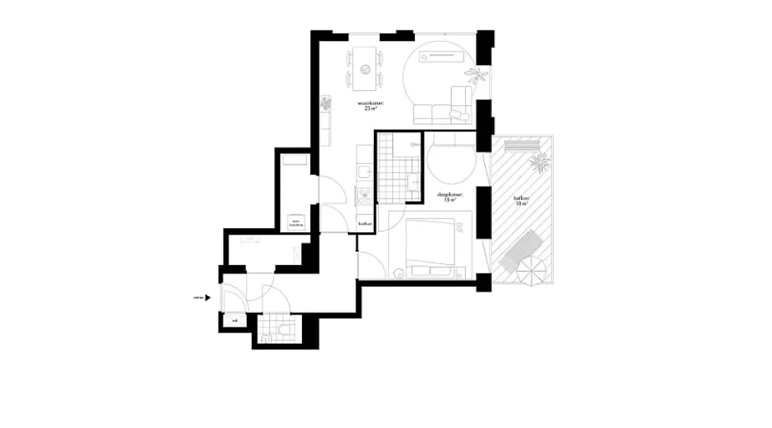 Dit 2-kamerappartement ligt op de 5e, 7e, 9e, 11e en 13e verdieping en heeft een woonoppervlakte van ongeveer 61 m². Het appartement is ingedeeld met een living met halfopen keuken, balkon op het noordoosten en een slaapkamer met ensuite badkamer. De slaapkamer is ruim genoeg om bijvoorbeeld een werkhoek te creëren. Ideaal als je regelmatig thuis werkt! Je hebt twee bergingen. In de berging aan de keuken kun je de wasmachine en wasdroger plaatsen en in de andere berging kun je spullen opbergen en staan de technische apparaten.