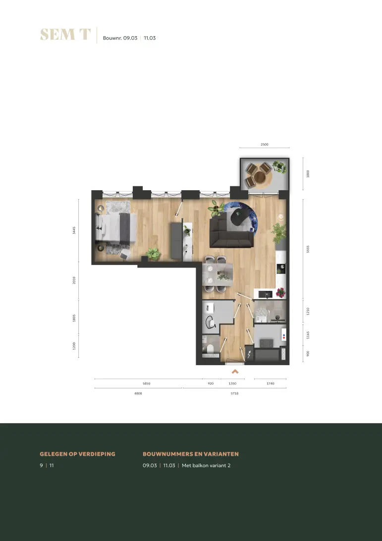 Een L-vorming tweekamerappartement met een royale slaapkamer en royaal dakterras of balkon.