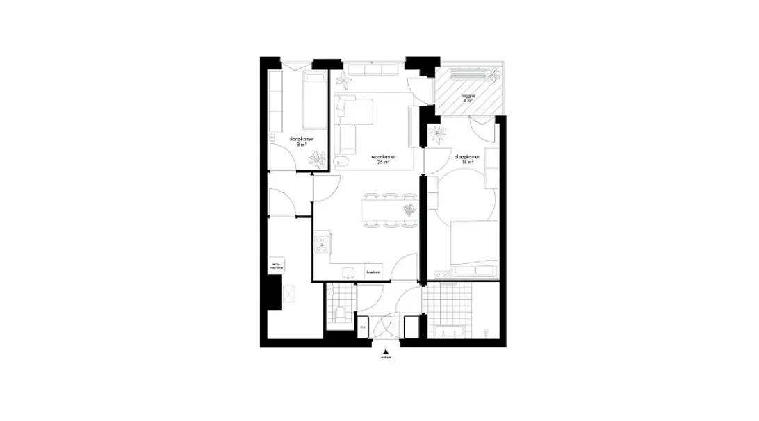 Dit 3-kamerappartement ligt op 3e verdieping en heeft een woonoppervlakte van ongeveer 71 m². Het appartement is ingedeeld met een ruime living met open hoekkeuken, twee slaapkamers, loggia, apart toilet, badkamer en een royale berging. In de berging kun je de wasmachine en wasdroger plaatsen en staan de technische apparaten. Bovendien kun je er nog van alles opbergen, zoals ski- en kerstspullen.