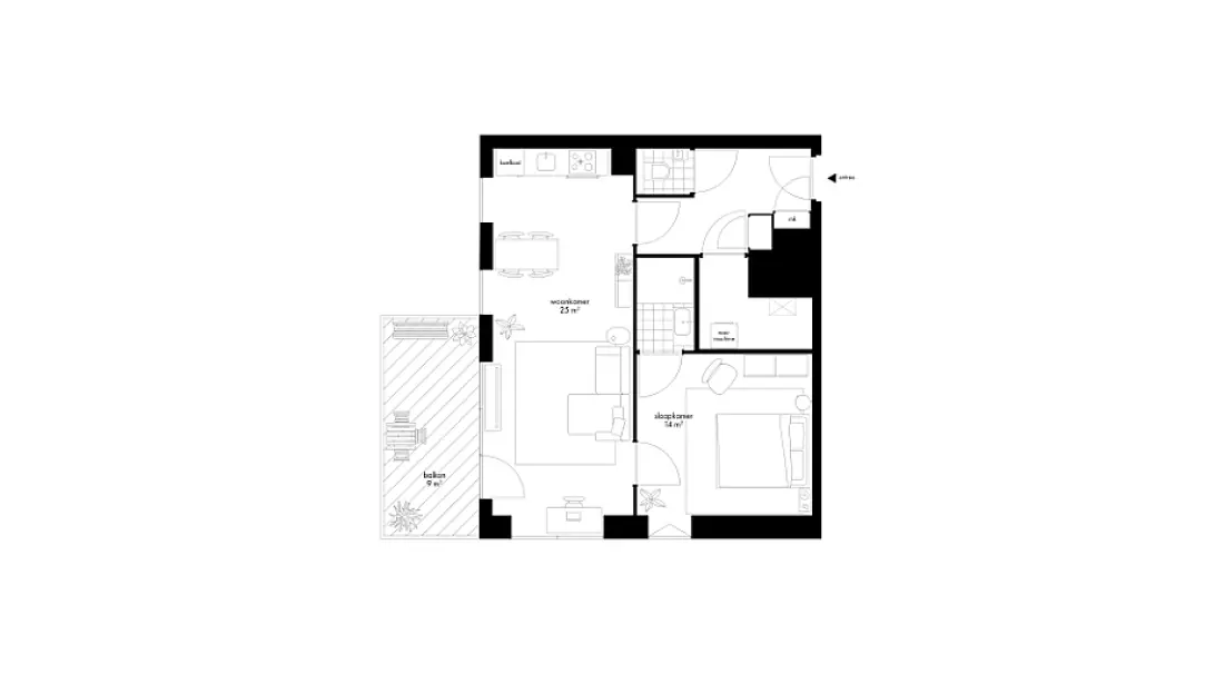 Dit 2-kamerappartement ligt op 6e verdieping en heeft een woonoppervlakte van ongeveer 63 m². Vanwege de hoekligging heeft dit appartement extra ramen wat zorgt voor een mooie lichtinval. Het appartement is ingedeeld met een living met open keuken, slaapkamer met ensuite badkamer. Het balkon, aan de living, heeft een ideale zonligging op het zuidwesten. Aan de hal liggen het separaat toilet en de berging. In de berging kun je de wasmachine en wasdroger plaatsen en staan de technische apparaten. Bovendien kun je er nog van alles opbergen, zoals koffers en ski- en kerstspullen.