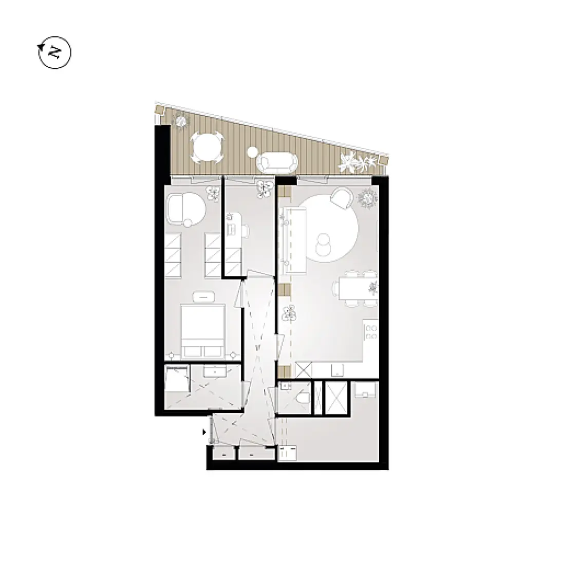 Het appartement heeft een oppervlakte van ongeveer 71 m² en is ingedeeld met een living met open hoekkeuken, twee ruime slaapkamers en een badkamer die vanuit de hal bereikbaar is. In de riante berging heb je ruimte voor een wasmachine en wasdroger, kun je diverse spullen opbergen en staan de technische apparaten.