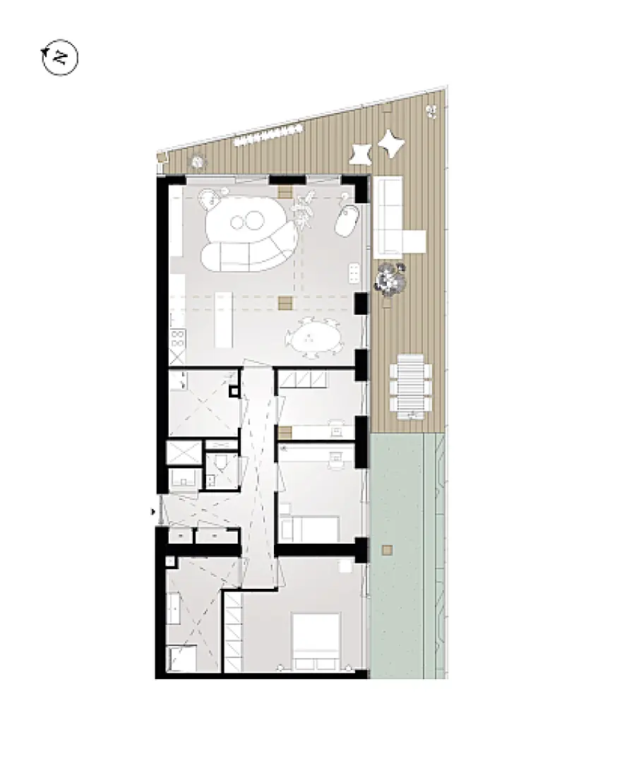Het appartement is ingedeeld met een royale, lichte living met open eilandkeuken, drie ruime slaapkamers en royale badkamer. Optioneel kun je kiezen voor een tweede badkamer direct aan de masterbedroom.