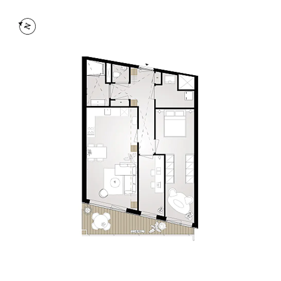 Dit royale 3-kamerappartement ligt op de 5e verdieping, aan de kant van de Docklandsweg. Het balkon ligt ideaal op het zuidwesten, waardoor je volop van de zon geniet tot die ondergaat.