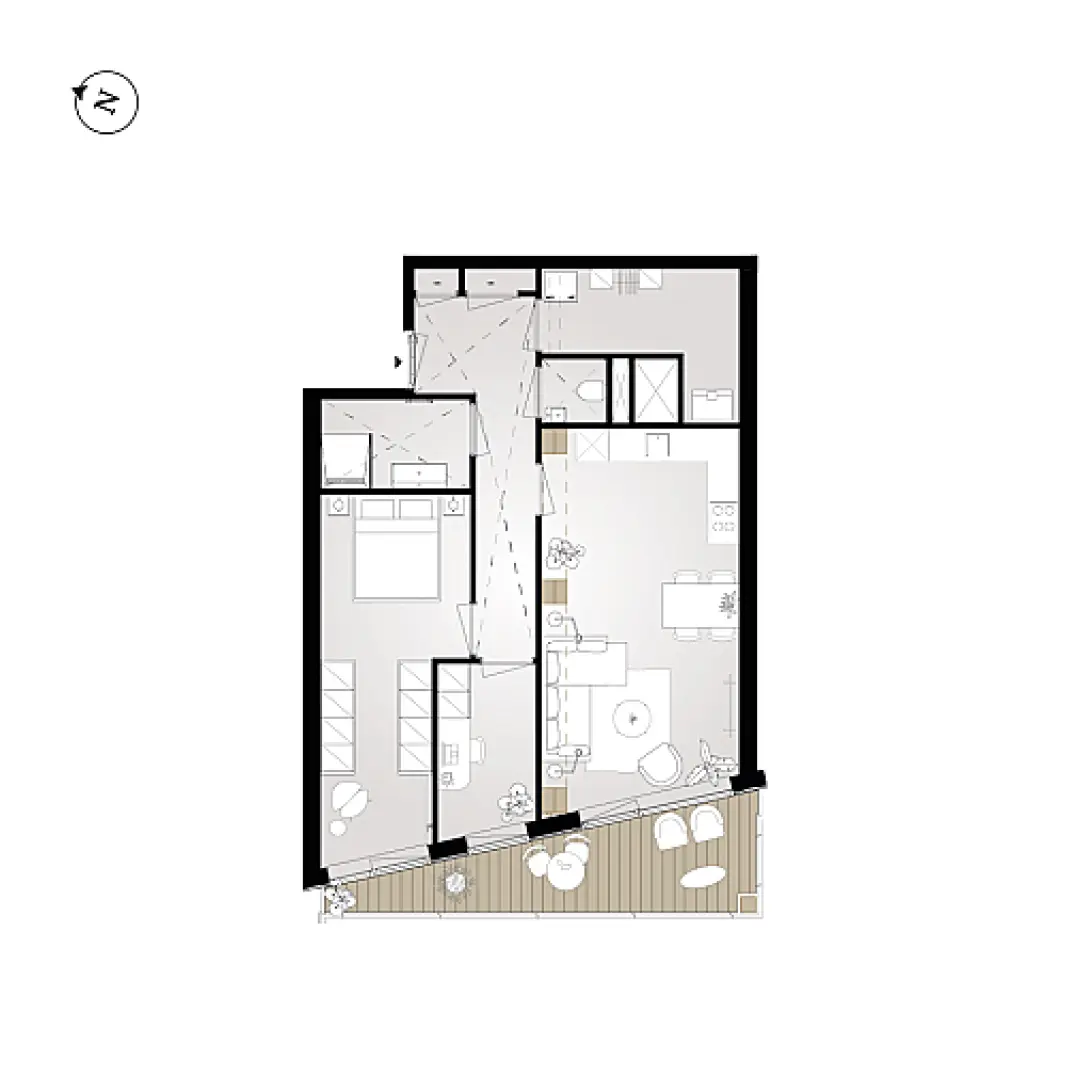 Dit 3-kamerappartement ligt op de 5e verdieping , aan de kant van de Docklandsweg. Het balkon ligt ideaal op het zuidwesten, waardoor je volop van de zon geniet tot die ondergaat.