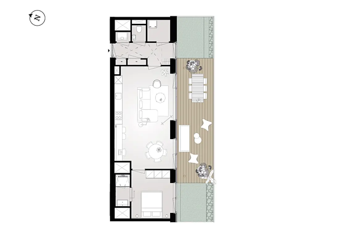 Dit compacte 2-kamerappartement ligt op de 6e verdieping van The Ark en is een buitenkans als je een royale buitenruimte zoekt. Het balkon, van maar liefst 39 m2, ligt ideaal op het zuidoosten. Je geniet dus een groot deel van de dag van de zon!