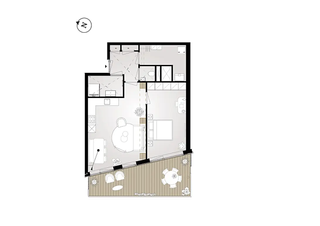 Dit 2-kamerappartement ligt op de 6e verdieping, aan de kant van de Docklandsweg. Het ruime balkon van 19 m2 heeft een ideale zonligging op het zuidwesten. Dat betekent dat je tot zonsondergang van de zon kunt genieten.
