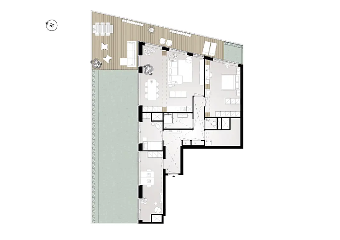 Dit royale 4-kamer hoekappartement van ongeveer 110 m² ligt op de 7e verdieping van The Ark en beschikt over een royaal balkon van maar liefst 104 m2. Een deel van het balkon bestaat uit sedumbegroeiing, wat zorgt voor een fraaie, groene oase.