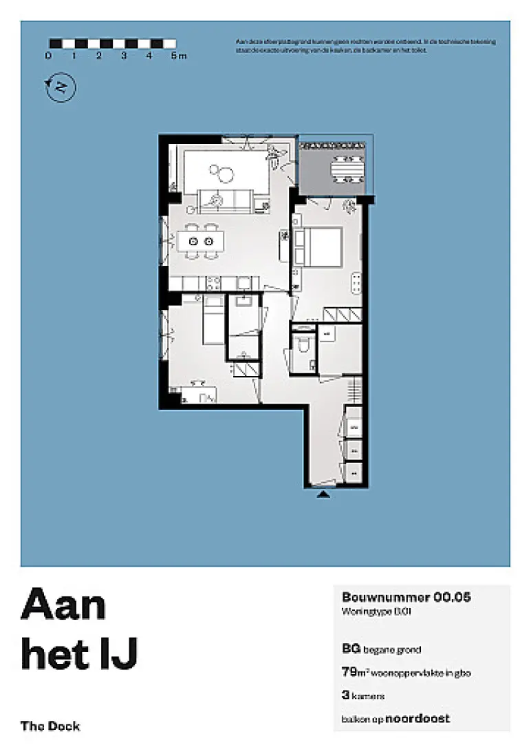Het appartement heeft een oppervlakte van ongeveer 79 m². Vanuit de living met open keuken heb je een mooi uitzicht op het Buiksloterkanaal. Het appartement is ingedeeld met twee slaapkamers. De kleine slaapkamer is ideaal als kinderkamer maar ook als thuiskantoor of kastenkamer.