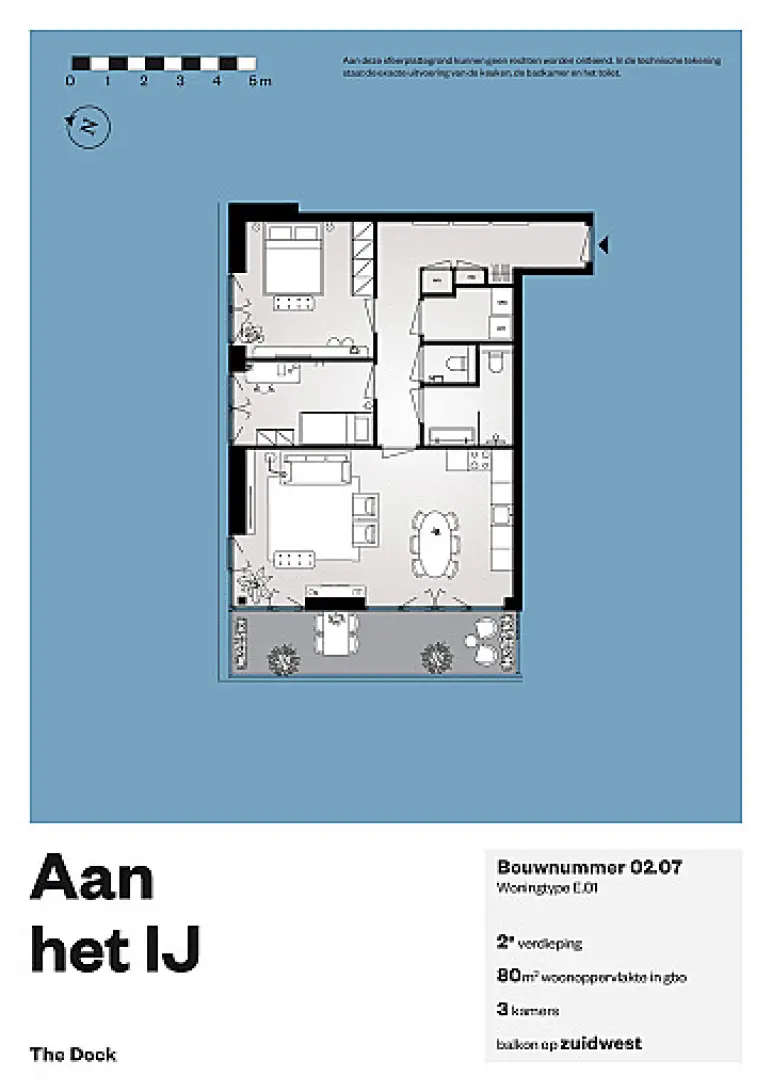 Het appartement heeft een oppervlakte van ongeveer 80 m² en is ingedeeld met een lichte living met open keuken, twee slaapkamers en een badkamer met inloopdouche, brede wastafel én tweede toilet. In de berging heb je ruimte voor een wasmachine en staan de technische apparaten.
