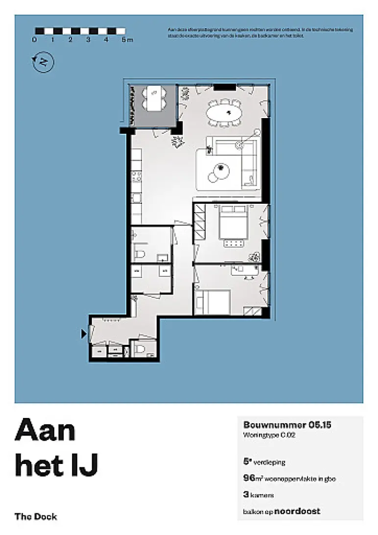Dit royale 3-kamer hoekappartement ligt op de 1e tot en met de 5e verdieping en beschikt over een balkon. Vanwege de hoekligging heeft dit appartement een overhoeks raam in de living, wat zorgt voor extra lichtinval én ultiem uitzicht op het Buiksloterkanaal.