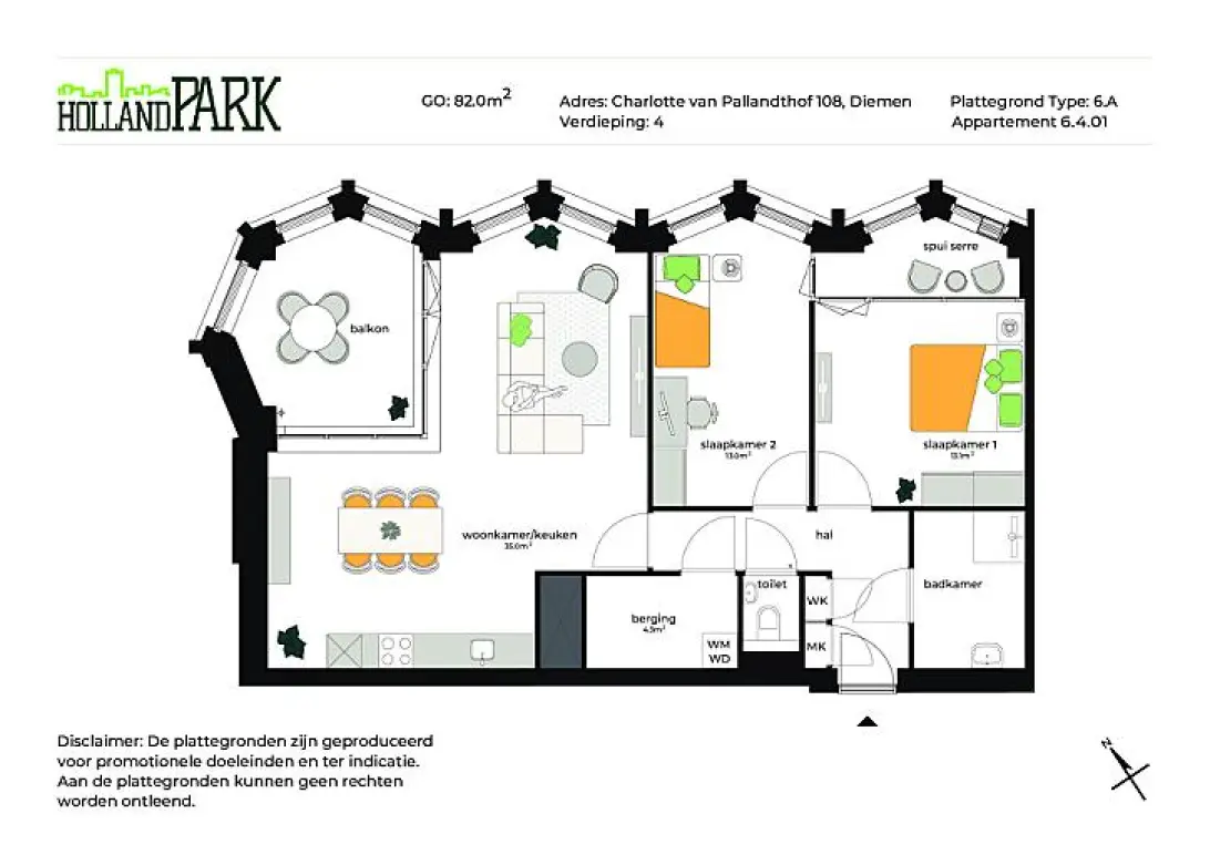 Dit lichte appartement van 82m² bevindt zich tussen de tweede en achtste verdieping en biedt een ruime woonkamer met open keuken van 35m² die uitkomt op een balkon. Het appartement heeft twee gelijkwaardige slaapkamers (13m² en 13m²), een moderne badkamer, een apart toilet en een praktische berging. De hal zorgt voor een logische verbinding tussen alle ruimtes, wat bijdraagt aan een aangenaam woongenot.
