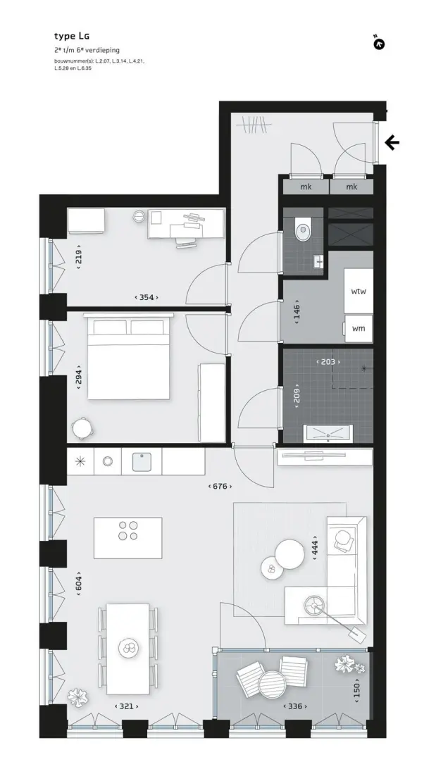 De hoekligging aan de Klaprozenweg en Klimopweg zorgt voor veel lichtinval. Daarnaast heeft dit appartementstype twee slaapkamers met grote openslaande ramen.