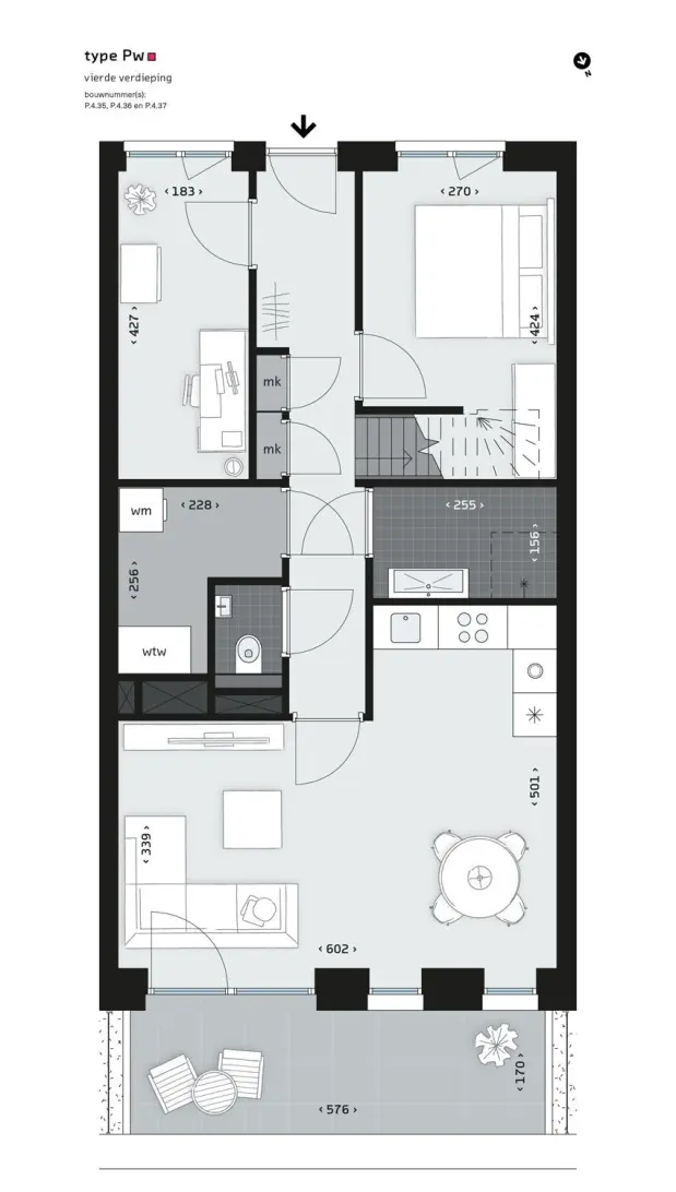 There is no shortage of lovely outdoor space at these apartments, all of which have a beautiful roof terrace that is accessible via a staircase! The apartments are therefore all located on the top floor and vary in living area from 55 m2 to 83 m2.