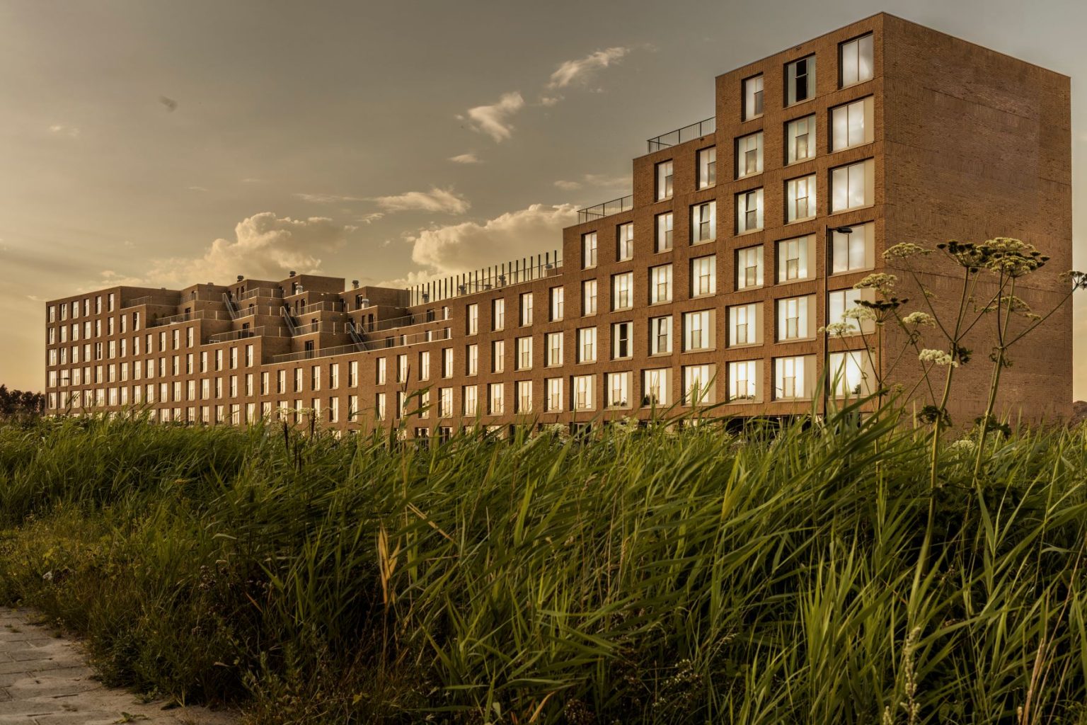 Voor het 134 m lange kavel ten noorden van de IJburglaan ontwierp Studioninedots een beeldbepalend blok met 364 studentenwoningen. De organisatie van de buitenruimtes is aangegrepen om de collectiviteit onder de studenten en het dynamisch gebruik van het gebouw mogelijk te maken. Essentieel was de ingreep om het terras, dat aan de verkeersluwe maar weinig aantrekkelijke noordzijde was gedacht, te verplaatsen naar het dak. Door het blok richting het zuiden uit te hollen, is ruimte gecreëerd voor collectieve terrassen en ontstond een diversiteit aan plattegronden en het gewenste stedelijke silhouet. De positie van de getrapte terrassen is zo uitgekiend dat het blok bovendien fungeert als geluidsmuur voor de achtergelegen huizen.