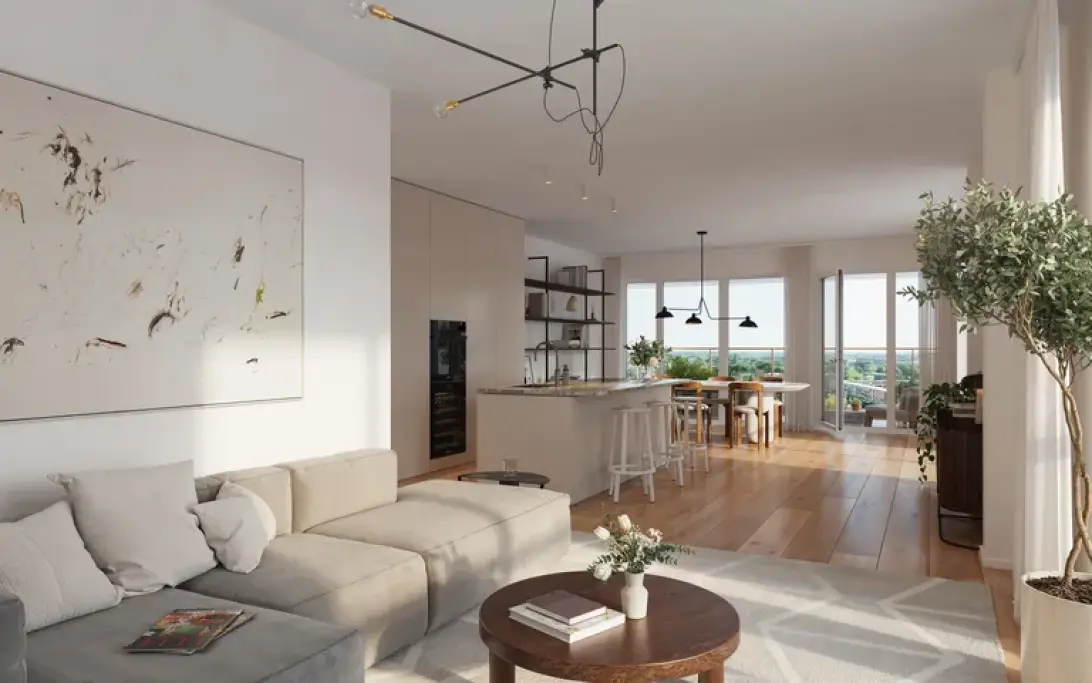 Conrad biedt royale buitenruimten die zich uitstrekken over de gehele breedte van het appartement, perfect georiënteerd op het oosten of westen en soms zelfs op allebei. Geniet van de ochtendzon met een kop koffie of ontspan in de avondzon na een lange dag. Deze ruime balkons bieden een ideale plek om te ontspannen, te entertainen en te genieten van het buitenleven, terwijl je omringd bent door het groen en de rust van de vernieuwde wijk. Ervaar het ultieme wooncomfort bij Conrad!