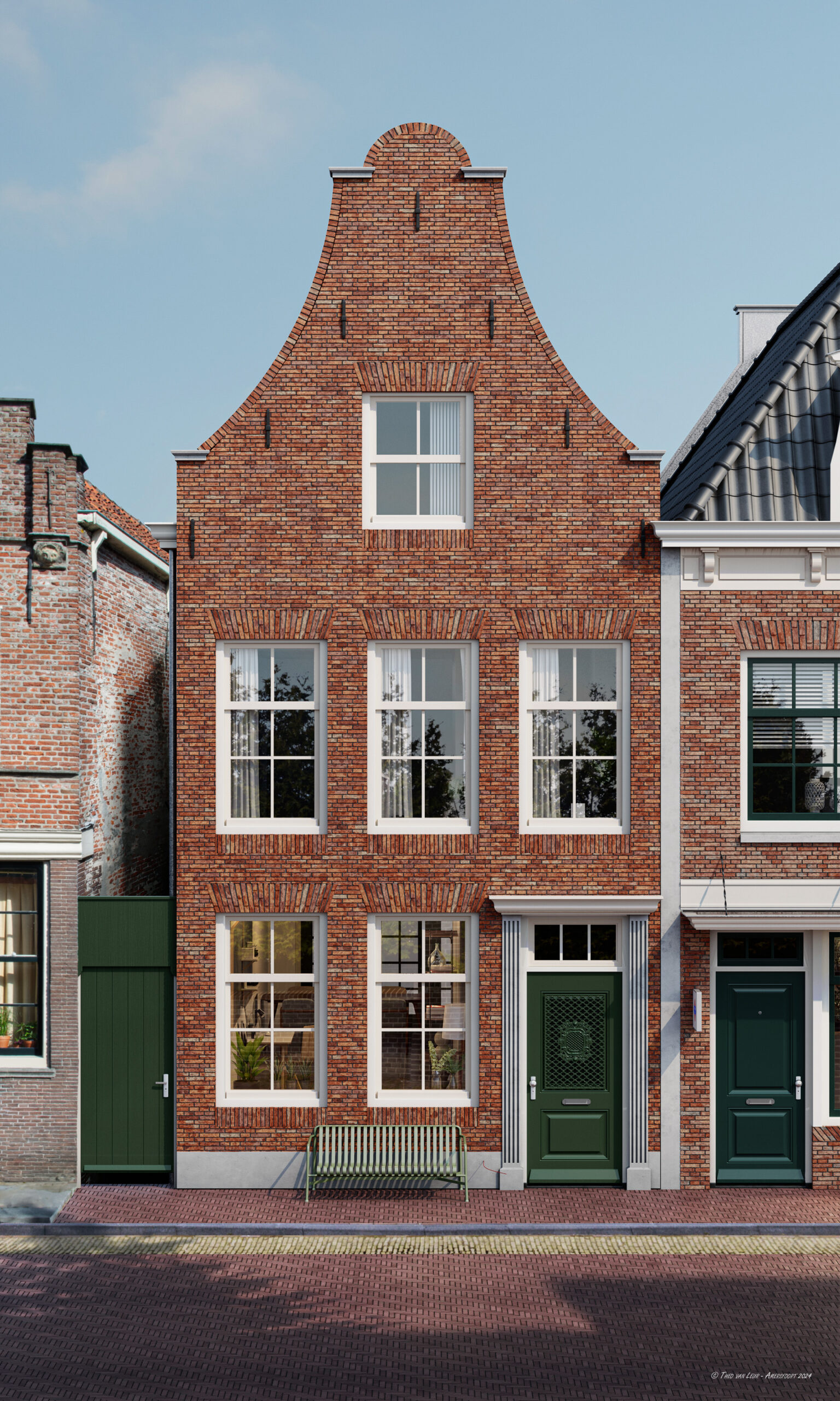 Dit herenhuis met zadeldak heeft een woonoppervlak van 183 m2. Dit pand heeft over alle verdiepingen een diepte van z’n 13,8 m2. Op de begane grond is de verdiepingshoogte 3 meter, dat is z’n 40cm meer dan een standaard nieuwbouwwoning. Deze extra hoogte geeft een extra dimensie aan de beleving van de ruimte. Achter op het kavel komt een losse berging, deze is door de architect ontworpen met een dakkap en dakpannen.