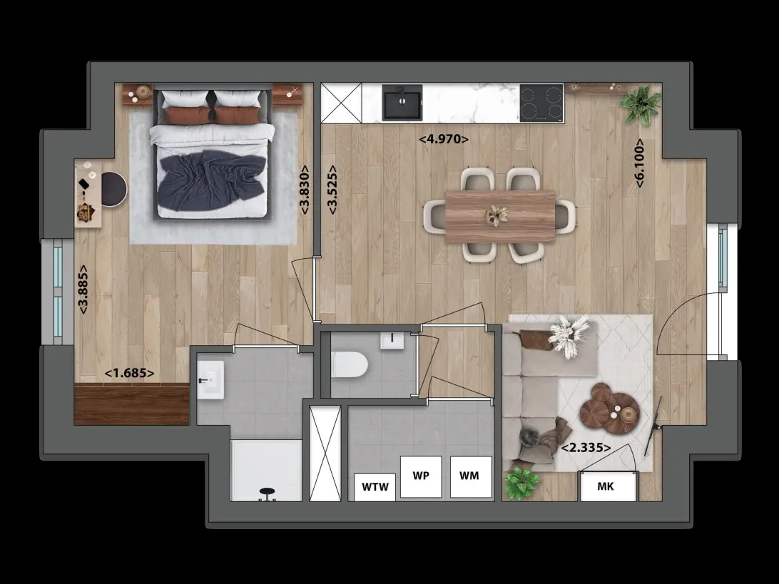 53m² - 61m² -