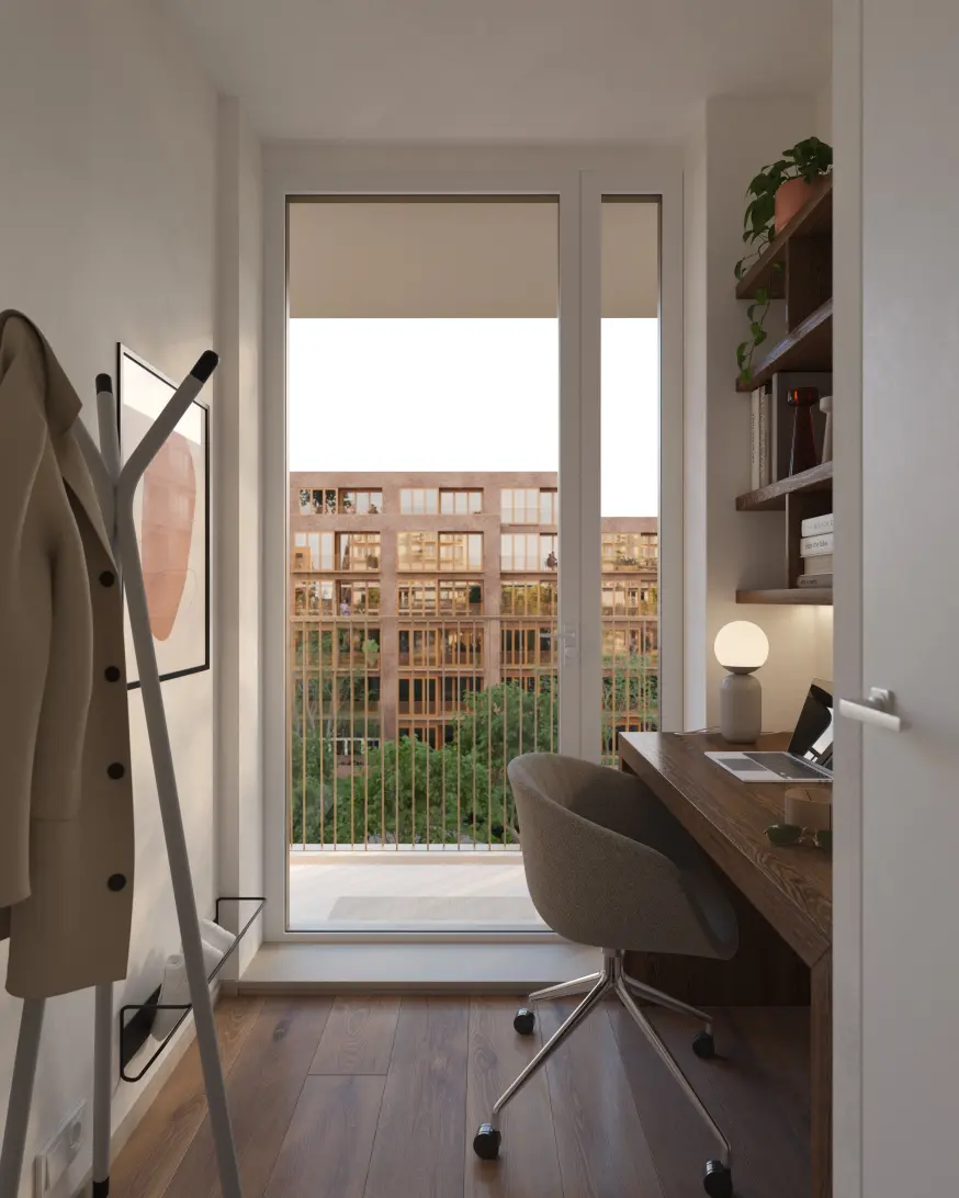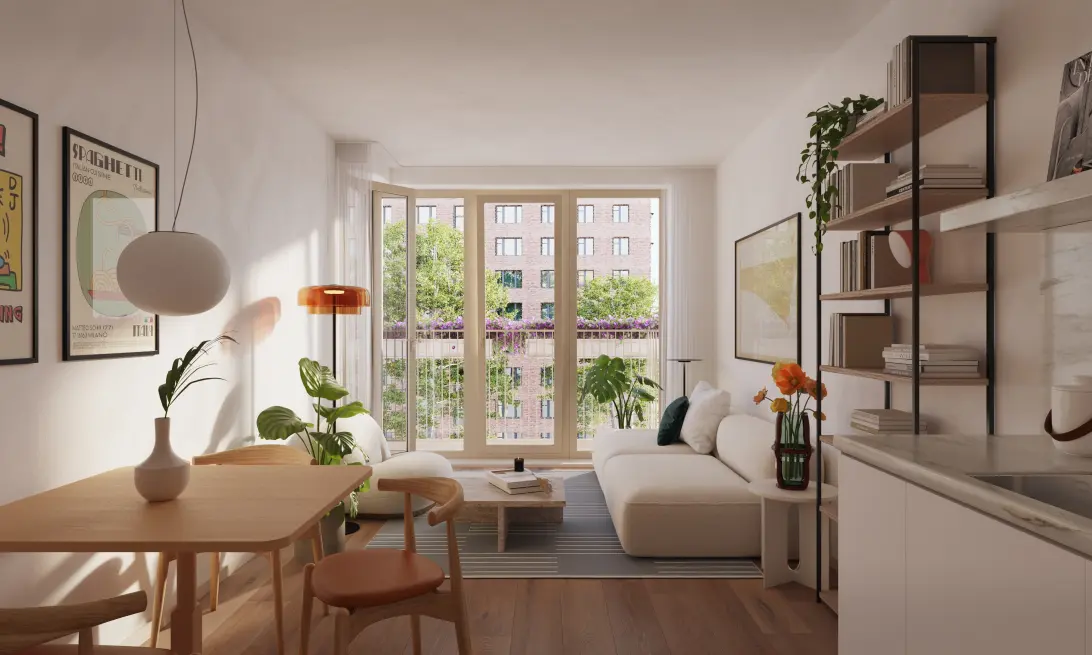 Orange Polly biedt 94 betaalbare appartementen van 33m² tot 56m². Gelegen aan een rustige wandelstraat, hebben de appartementen vrij uitzicht aan twee zijden op het Buiksloterdijkpark. Geniet van een drankje op je balkon na het werk, koel af in de binnentuin na een ochtend joggen in het park, of maak gewoon een praatje met je buren.