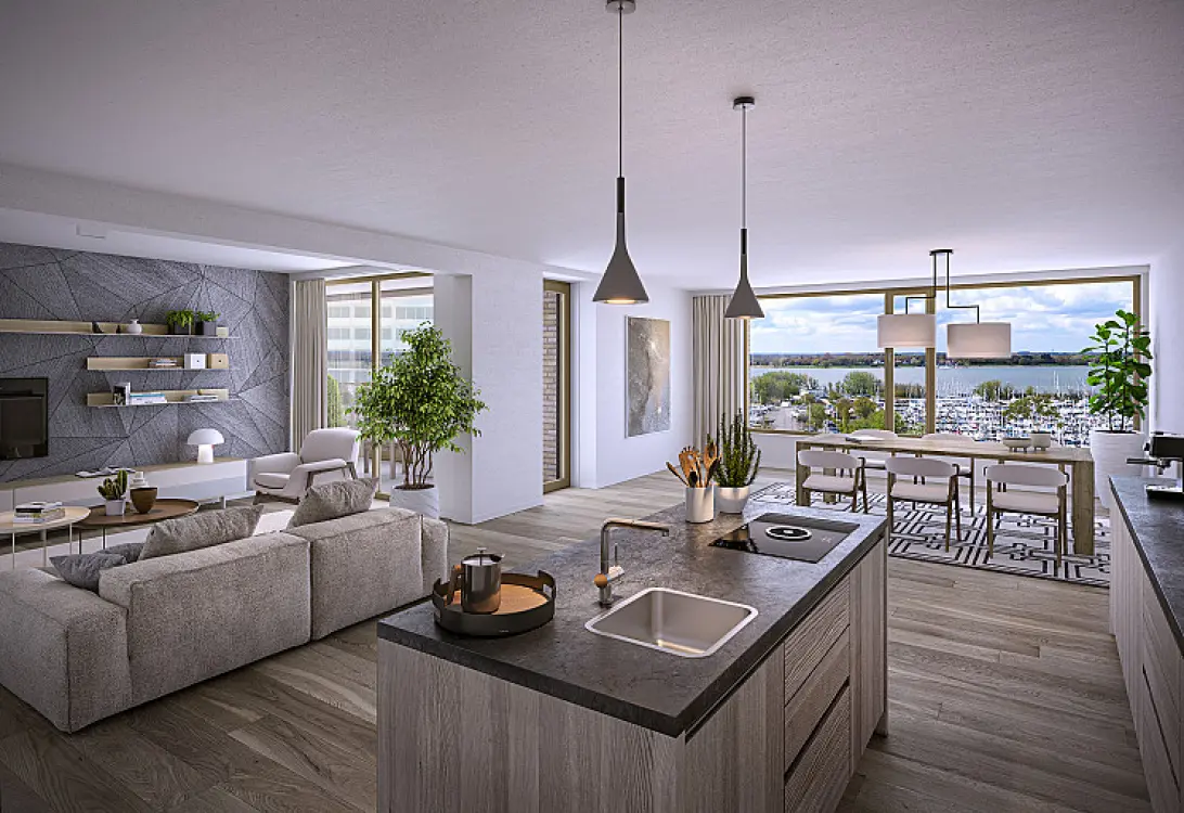 Uniek en ruim qua indeling: zo is dit ruime vier-kamer appartement het beste te omschrijven. De woonkamer/keuken is ruim opgezet met een luxe eilandkeuken. Een heerlijke plek om te genieten van een hapje en een drankje. Er zijn drie fijne slaapkamers en een ruime badkamer voorzien van een ligbad. Slaapkamer 3 kan desgewenst ook als inloopkast worden ingericht. Verder bevat de woning een separaat toilet en een ruime berging. Het terras van 14m2 grenst aan de woonkamer/keuken en slaapkamer 1 heeft uitzicht op de haven en het IJmeer. Vanuit de slaapkamers kunt u ’s morgens de zon zien opkomen.