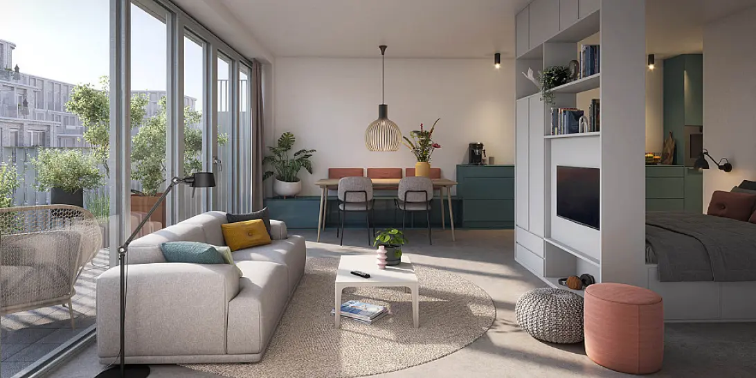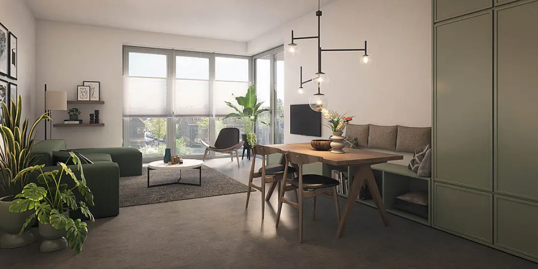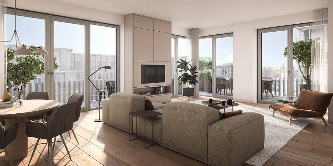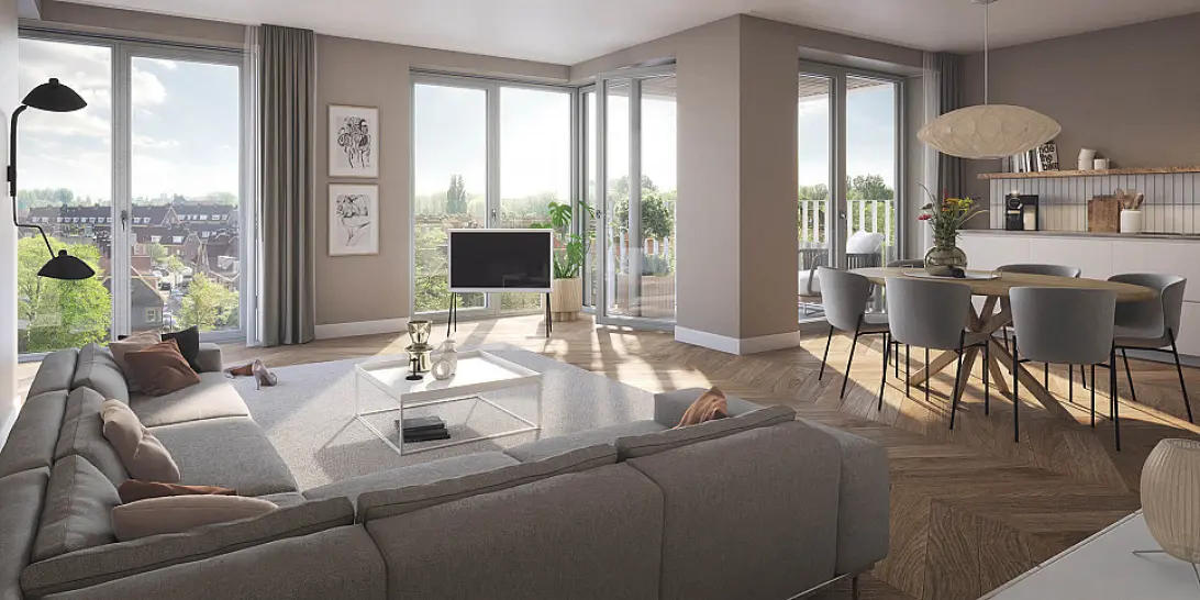 In de appartementen aan de andere zijden van het gebouw geniet je van een optimale ligging op de zon. Ga jij voor een appartement op het zuidoosten, zuidwesten of noordwesten? In alle gevallen heb je alle ruimte op je terras of balkon. En bovenin kijk je geweldig uit over de nieuwe stadswijk en zie je verderop de A’dam Toren pronken aan het IJ.