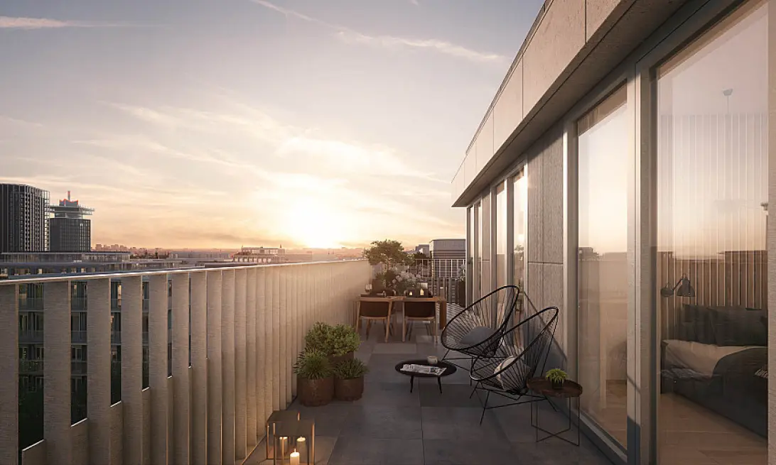 Ieder appartement in The Dock heeft een aangenaam balkon of dakterras. De balkons en terrassen zijn afgezet met lamellen hekwerken. Halverwege het hek draaien de lamellen een kwartslag, waardoor je goed zicht naar buiten én privacy hebt. Zoek je een appartement met een royaal dakterras? Ontdek dan de hoekappartementen op de 5e, 6e en 7e verdieping.