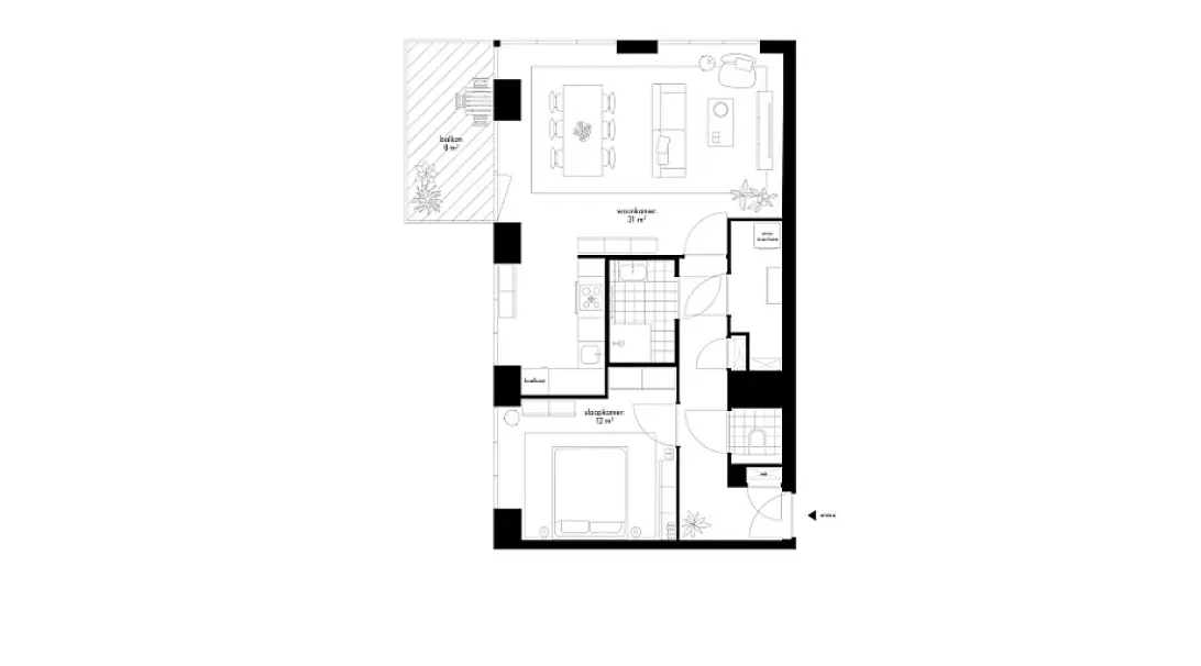 Dit 2-kamerappartement van ongeveer 63 m2 ligt op de 9e, 13e en 17e verdieping en heeft een balkon op het zuidwesten. Vanwege de hoekligging heeft dit appartement extra ramen wat zorgt voor een mooie lichtinval. Het appartement is ingedeeld met een royale living met halfopen hoekkeuken, ruime slaapkamer, apart toilet en badkamer met wastafel en inloopdouche. In de berging kun je de wasmachine en wasdroger plaatsen en staan de technische apparaten.