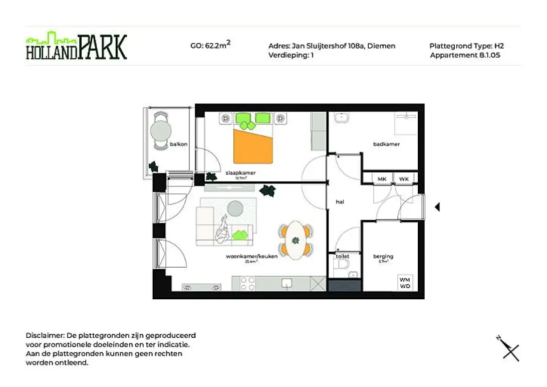 Dit comfortabele 2-kamer appartement biedt een ideale leefomgeving voor een single of een stel. De ruime woonkamer met open keuken vormt het hart van het appartement, perfect voor ontspanning en het ontvangen van gasten. De slaapkamer biedt voldoende ruimte voor een tweepersoonsbed en kastruimte. Een moderne badkamer, apart toilet en een handige berging maken dit appartement compleet. In sommige gevallen is er een extra onbenoemde ruimte aanwezig, flexibel te gebruiken als werk- of hobbyruimte. Voor een gedetailleerd overzicht van de indeling en afmetingen van de verschillende ruimtes, zie de plattegrond.
