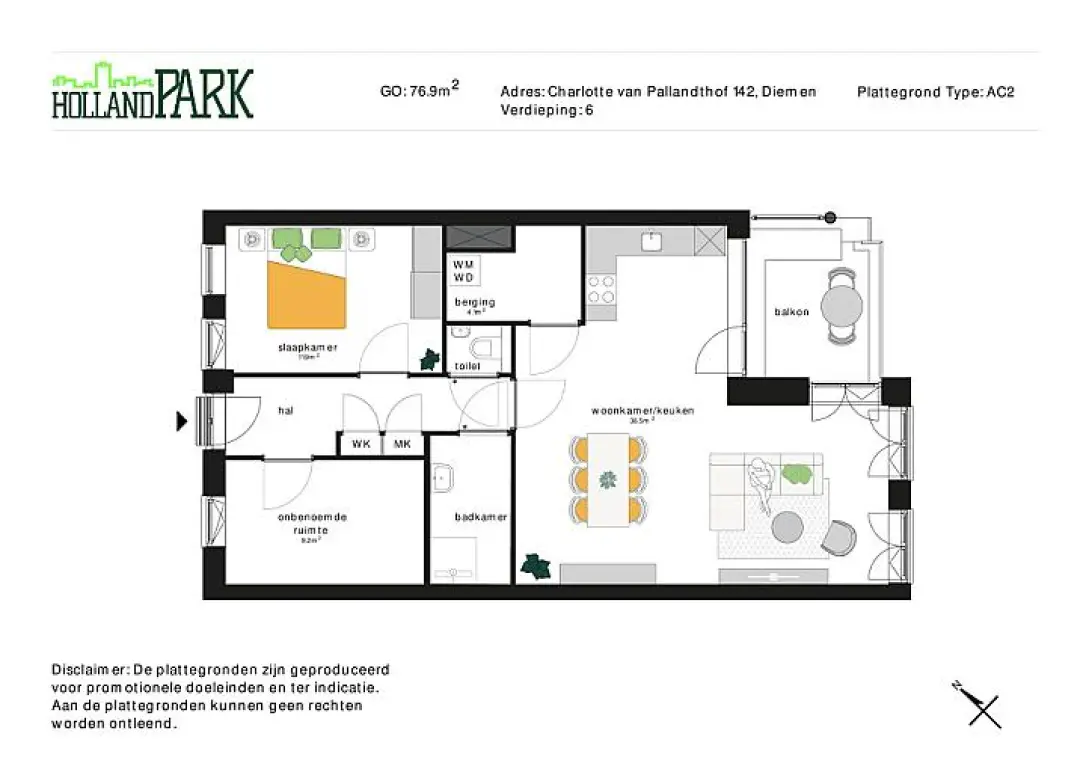 Dit comfortabele 2-kamer appartement biedt een ideale leefomgeving voor een single of een stel. De ruime woonkamer met open keuken vormt het hart van het appartement, perfect voor ontspanning en het ontvangen van gasten. De slaapkamer biedt voldoende ruimte voor een tweepersoonsbed en kastruimte. Een moderne badkamer, apart toilet en een handige berging maken dit appartement compleet. In sommige gevallen is er een extra onbenoemde ruimte aanwezig, flexibel te gebruiken als werk- of hobbyruimte. Voor een gedetailleerd overzicht van de indeling en afmetingen van de verschillende ruimtes, zie de plattegrond.