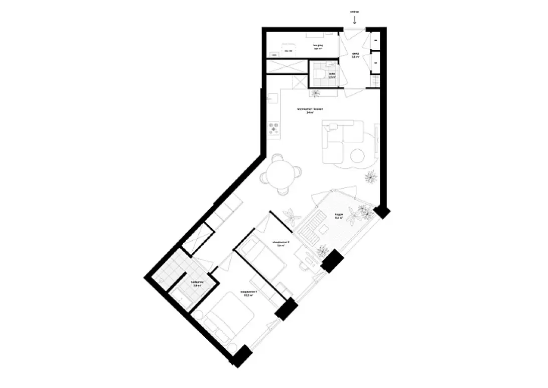 De open hoekkeuken ligt in de ruime living, die ook toegang biedt tot de loggia. Dankzij de twee openslaande deuren is dit een verlengde van de zithoek. En naast een separaat toilet beschik je over een berging met genoeg plek voor een wasmachine, droger en zelfs een voorraadkast. Tot slot is er in de parkeerkelder van het gebouw een eigen berging.