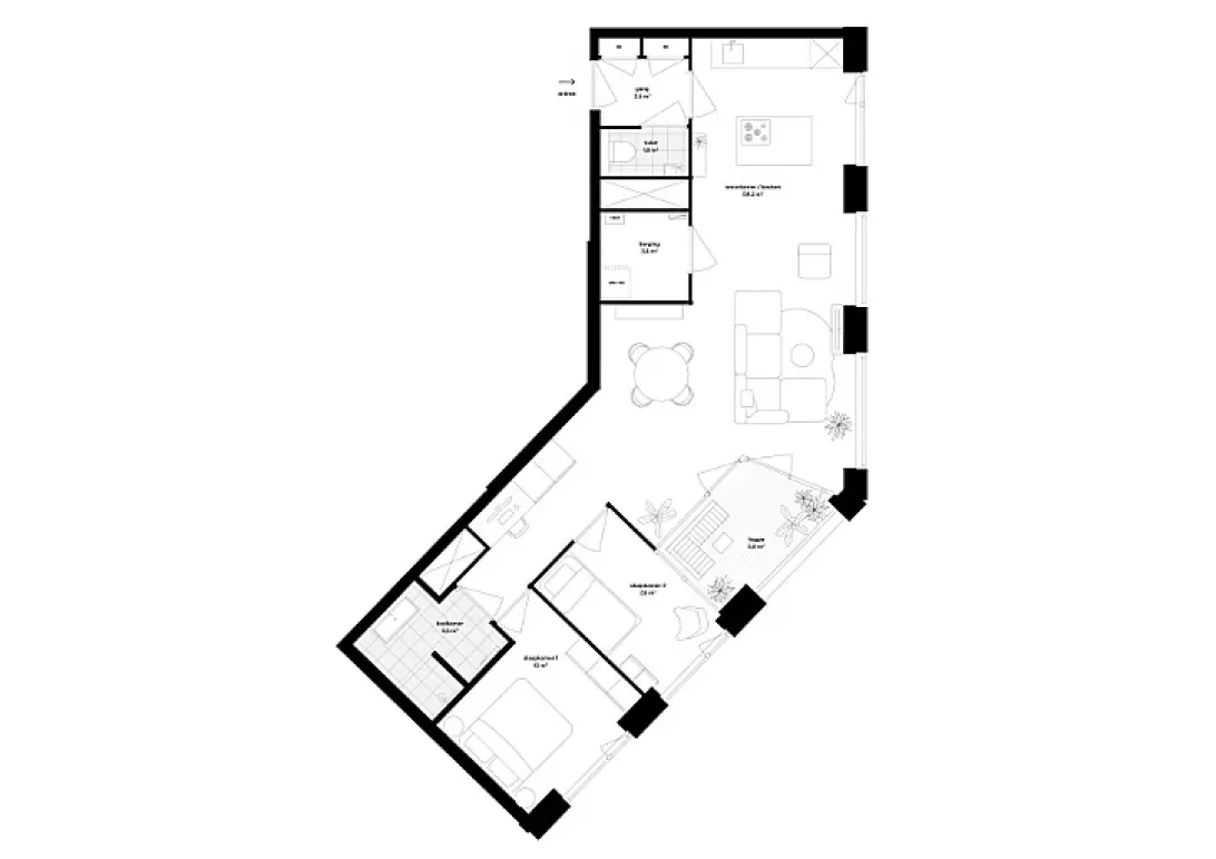 Dit 3-kamerappartement ligt op de 11e verdieping van Dialogue en is qua vorm echt uniek! Het heeft zo’n 75 m2 aan woonplezier, een speelse indeling en een loggia op het zuidoosten die voelt als een verlengstuk van de living. De verdiepingshoge ramen zijn ook een absolute pré.