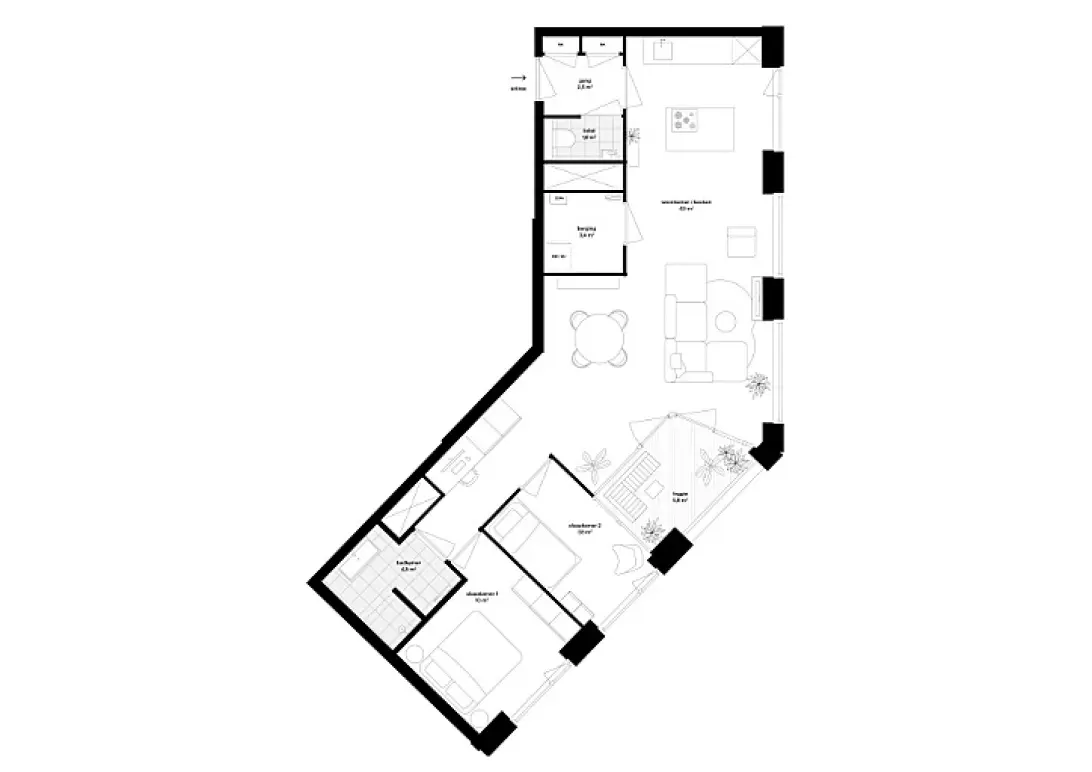 Dit 3-kamerappartement op de 12e t/m 15e verdieping in Dialogue is qua vorm echt uniek! Het heeft zo’n 75 m2 aan woonplezier, een speelse indeling en een loggia op het zuidoosten die voelt als een verlengstuk van de living. De verdiepingshoge ramen zijn ook een absolute pré.