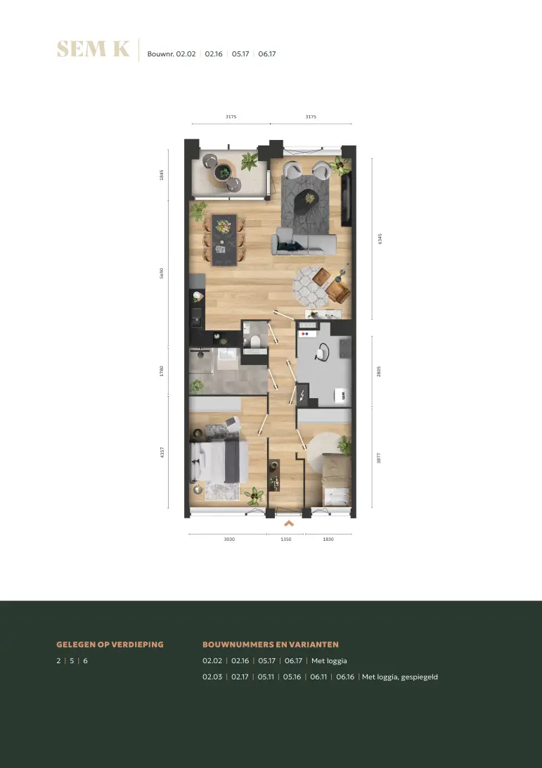 Een praktisch ingedeeld appartement met twee slaapkamers en een loggia.