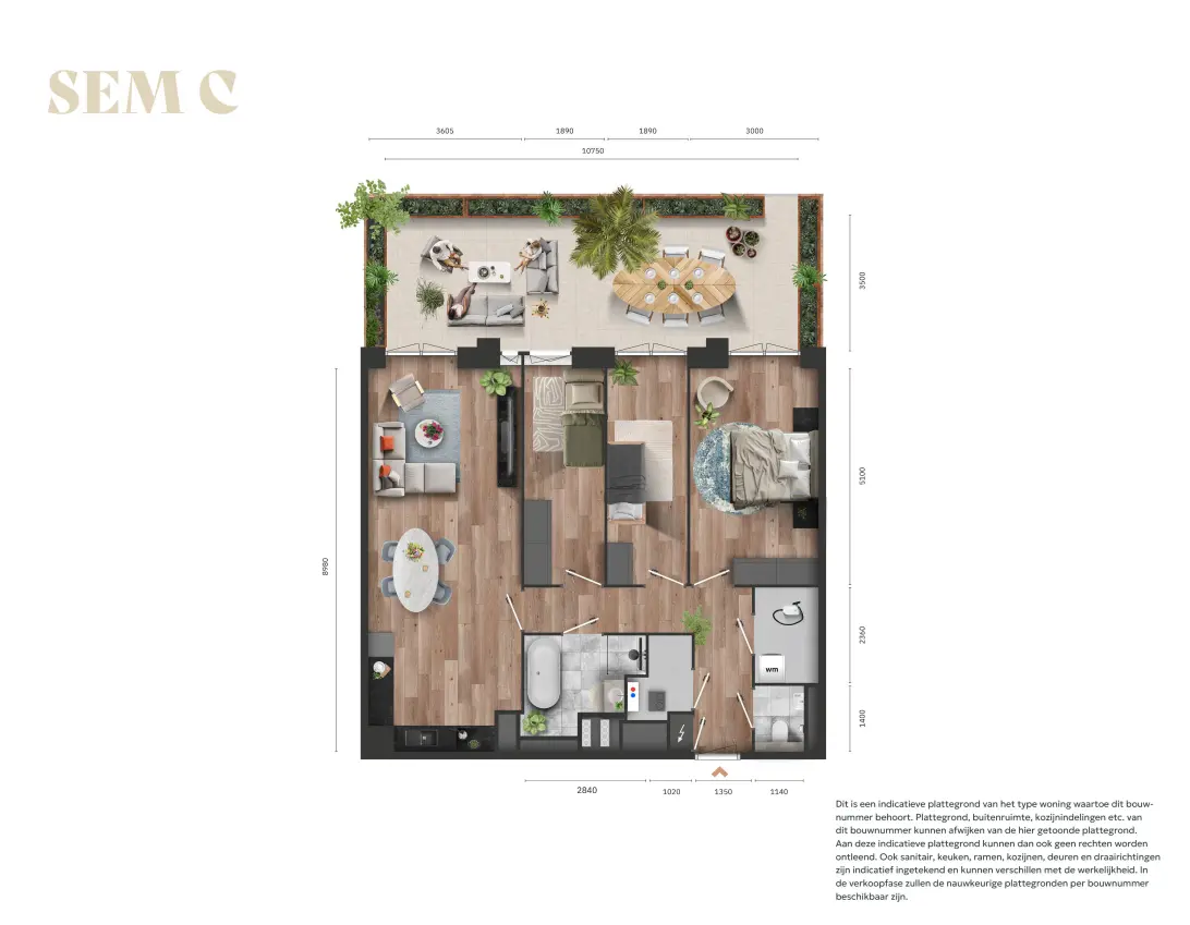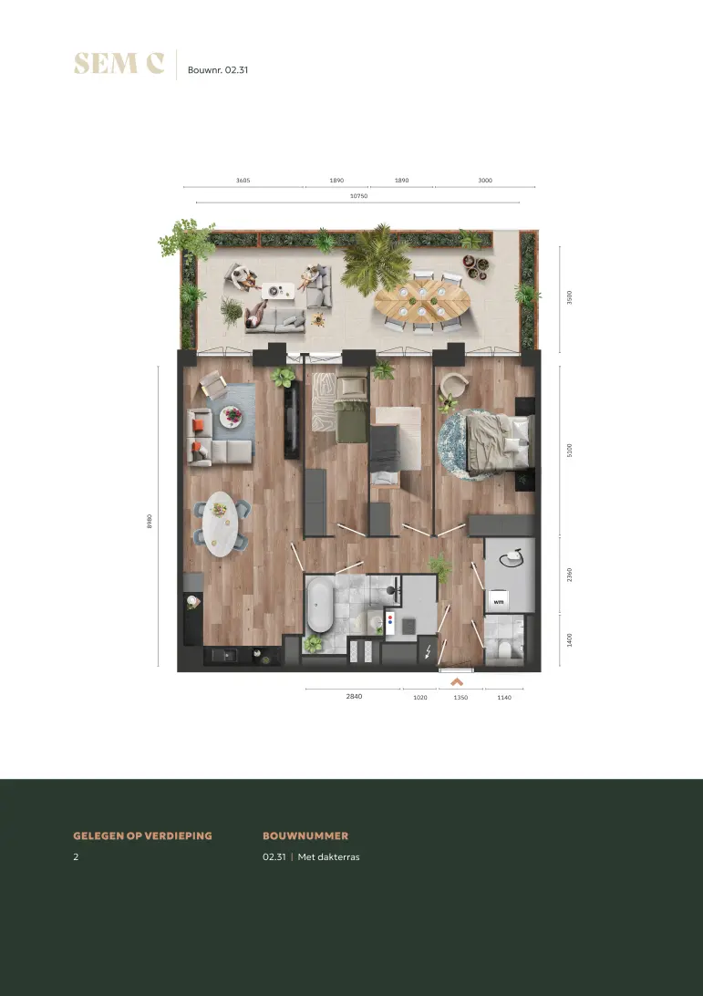 Een comfortabel vierkamerappartement met daktuin, gelegen op het zuidoosten.