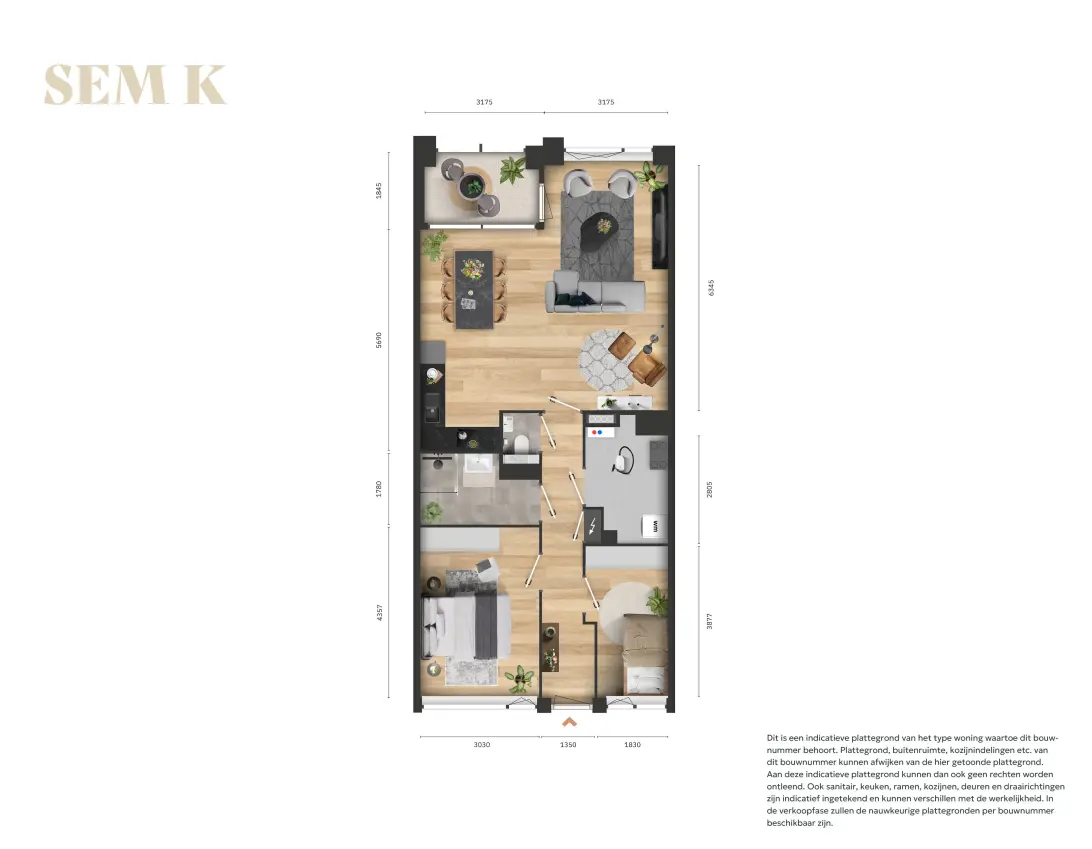 Een praktisch ingedeeld appartement met twee slaapkamers en een loggia.